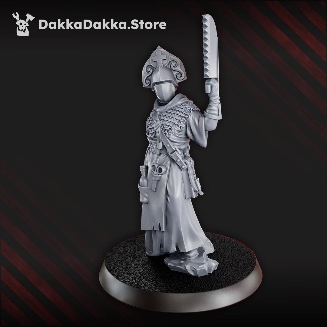 Bring the martial might and ancient discipline of the holy empire to the trenches, commanding the resolute armies of Antioch with the Ada The Sawbones. Acquire these powerful tabletop models, perfect for showcasing the imposing, classical armor of the empire. Optimized for Trench Crusade Wargaming, this entire unit is crafted as high-fidelity 3D-printed miniatures. Muster this disciplined force to withstand any assault and dominate the ravaged battlefield.